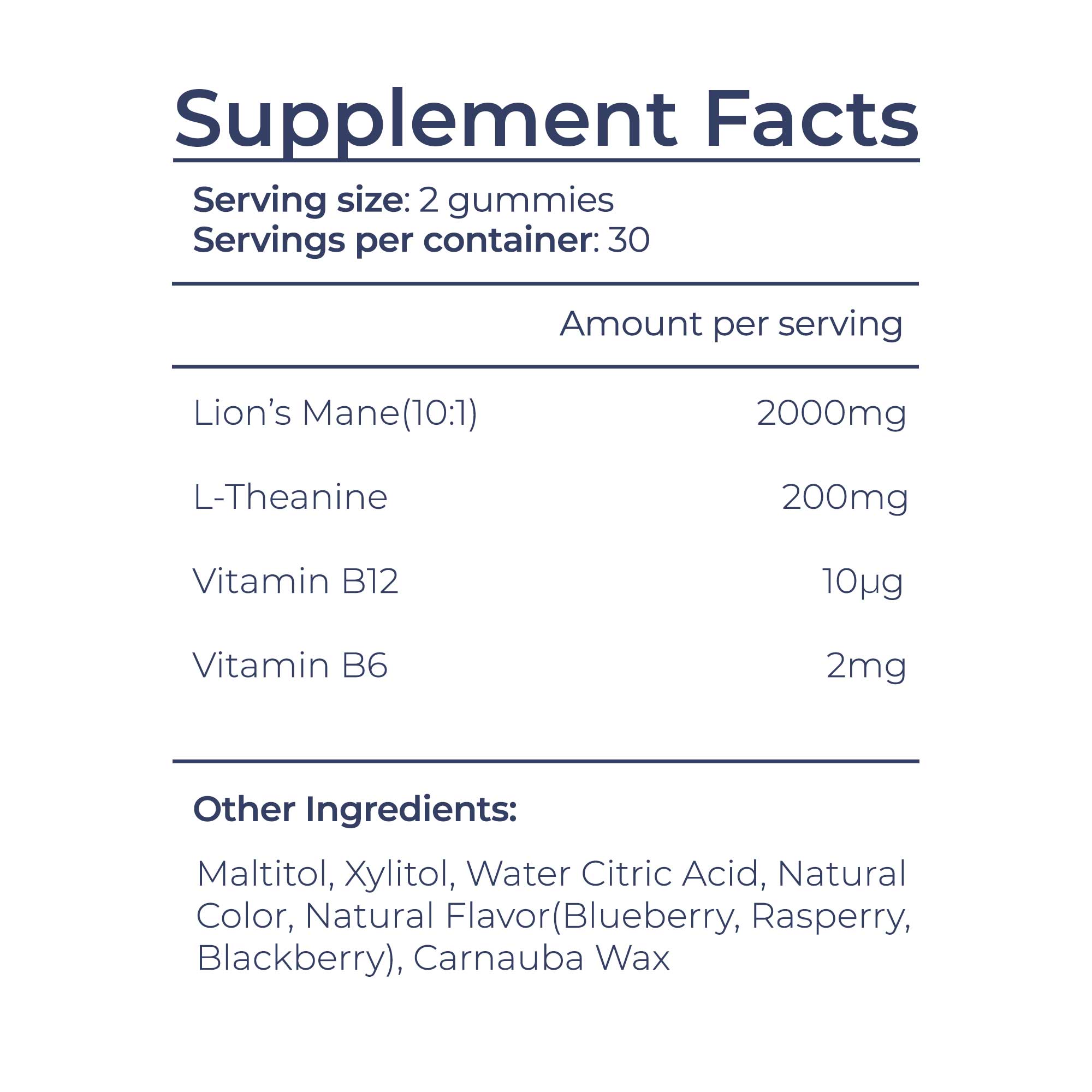 Other: Maltitol, Xylitol, Water Citric Acid, Natural Color, Natural Flavor(Blueberry, Raspberry, Blackberry), Carnauba Wax